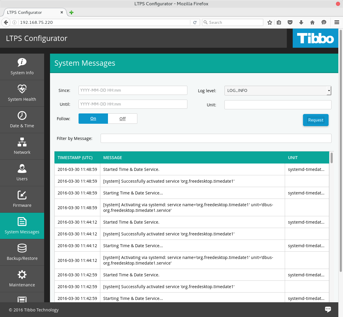 Other types of Tibbits have their own OS drivers and management functions. LTPS Configurator takes care of Tibbit drivers that must be loaded on boot. LTPS Web Interface allows you to setup certain complex Tibbits such as the WiFi, GPRS, USB, and an SD card Tibbit.