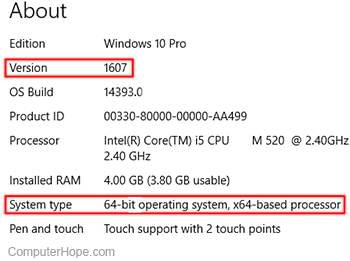 If the Version number is less than 1607, then you need to update the Windows. If your System type is not a 64-bit operating system, you will not be able to run WSL.