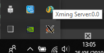 Allow XMing Server on windows firewall in Windows Defender. Start the XMing server on your Windows system by searching in Star Menu and clicking it. When the Windows XMing server is running, an icon XMing appears in the windows system tray.