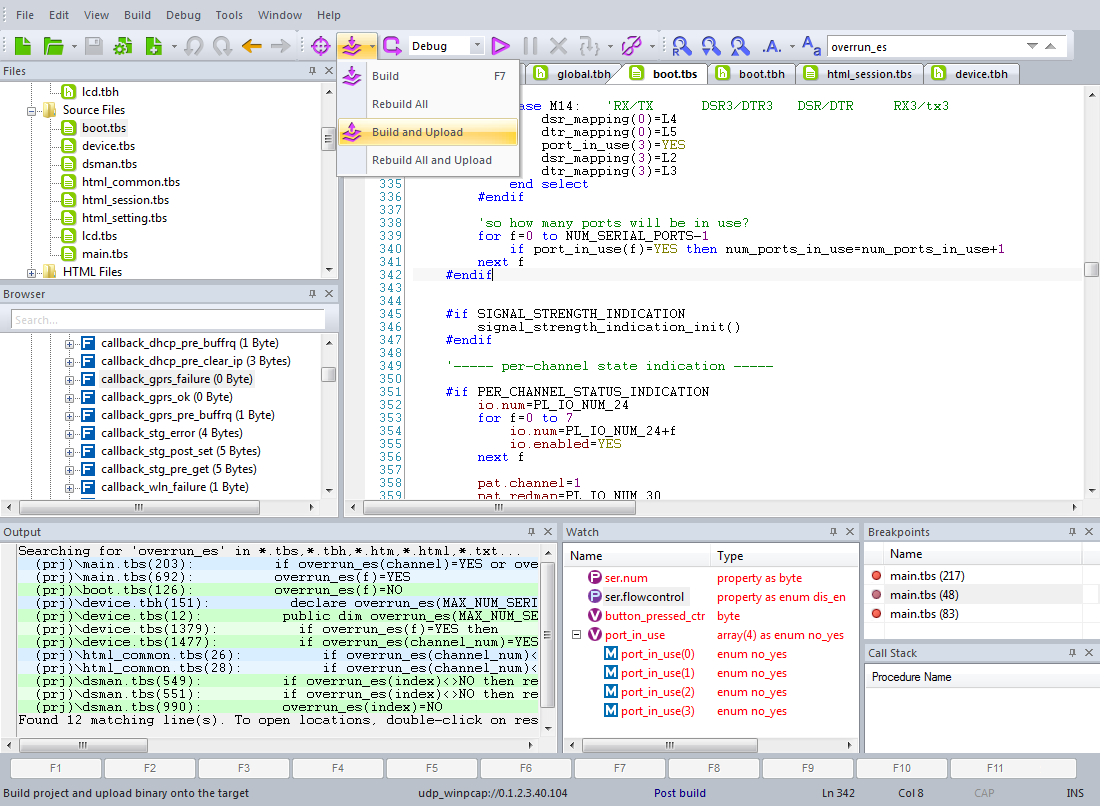 - Tibbo IDE (TIDE) development software featuring network debugging