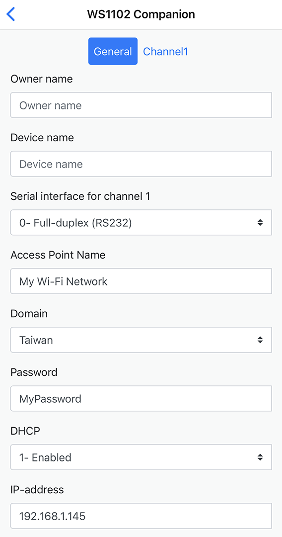 The WS1102 is a wireless device, so it has to be configured for connecting to your Wi-Fi network (access point). The Wi-Fi settings are stored in a Device Configuration Block (DCB) located in the flash memory. You must have the device connected to your Wi-Fi network before proceeding with anything else.