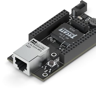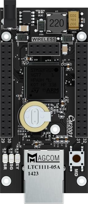 The EM2001 is a Tibbo BASIC/C-programmable IoT board with Ethernet, as well as optional Wi-Fi*, BLE* (Bluetooth Low-Energy), and 4G/LTE cellular* connectivity. The EM1001 has four independent UARTs.