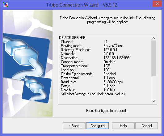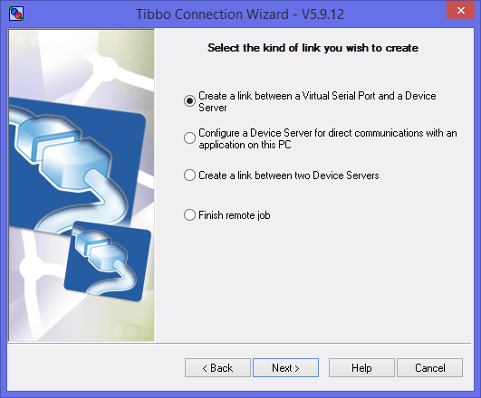 Connection Wizard guides you through creating data links between a PC and a Device Server, or between two Device Servers.