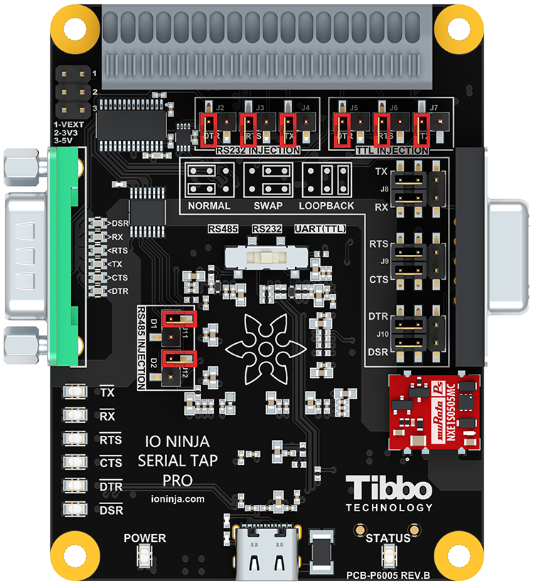 Serial Tap Pro also includes advanced features like RS485 data direction detection, hardware-level passthrough for RS232 wedge monitoring, and a convenient quick-release terminal block. Its FPGA-based architecture ensures accurate traffic forwarding and event capture, making it a complete tool for developers who need reliable and detailed serial communication analysis.