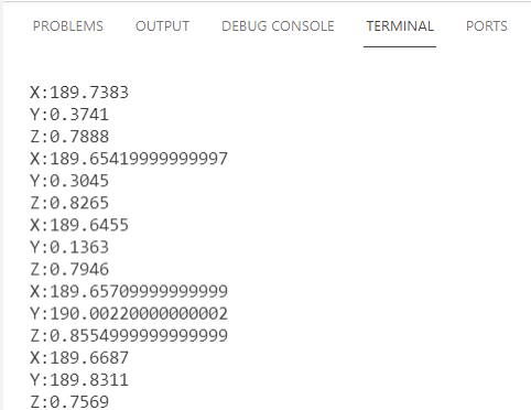 Either way, you will see the sensor output printed in the terminal (VSC shown below):