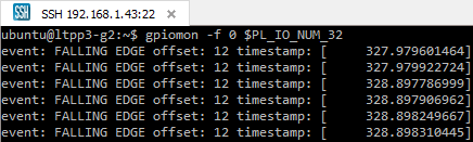 For example, we can set I/O line 32 (the first pin of socket S3) to be a falling edge interrupt with the following command: